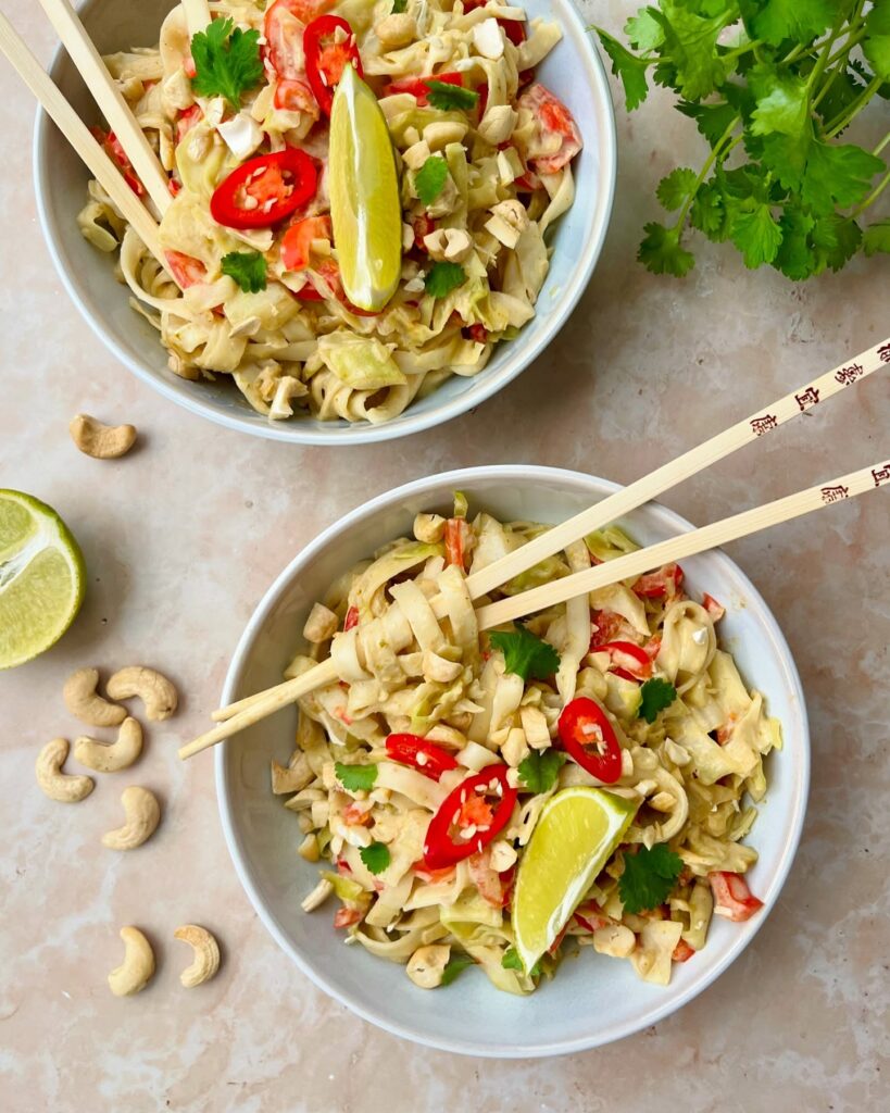 ROMIGE GROENE CURRY-KOKOSNOEDELS MET SPITSKOOL, PAPRIKA, LIMOEN & RODE PEPER